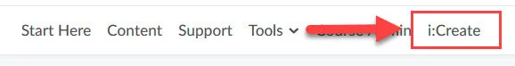 For Distance Education courses, the i:Create link appears to the right of ‘Course Admin’ in your navbar.
