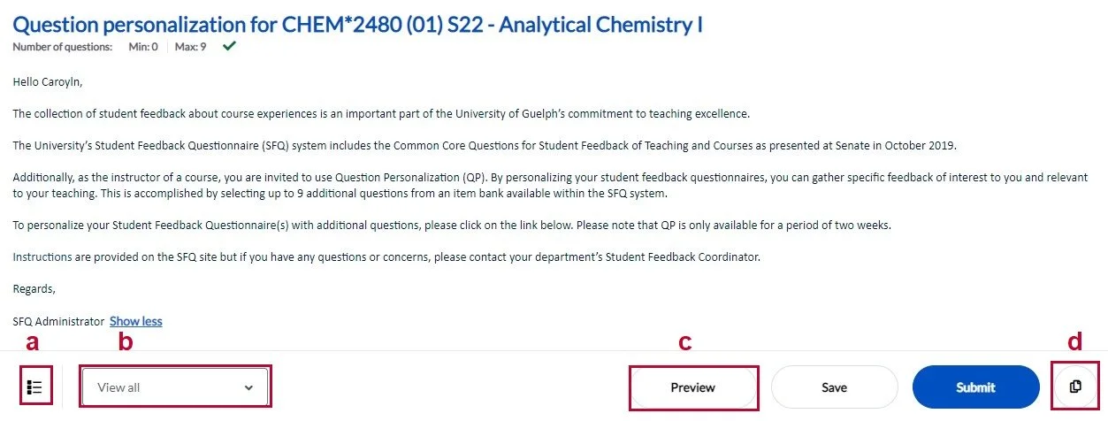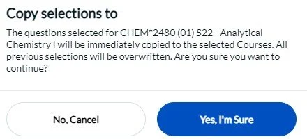 - Your selections will be copied over the the current course. Select Submit to add the copied questions to your SFQ and complete the process.